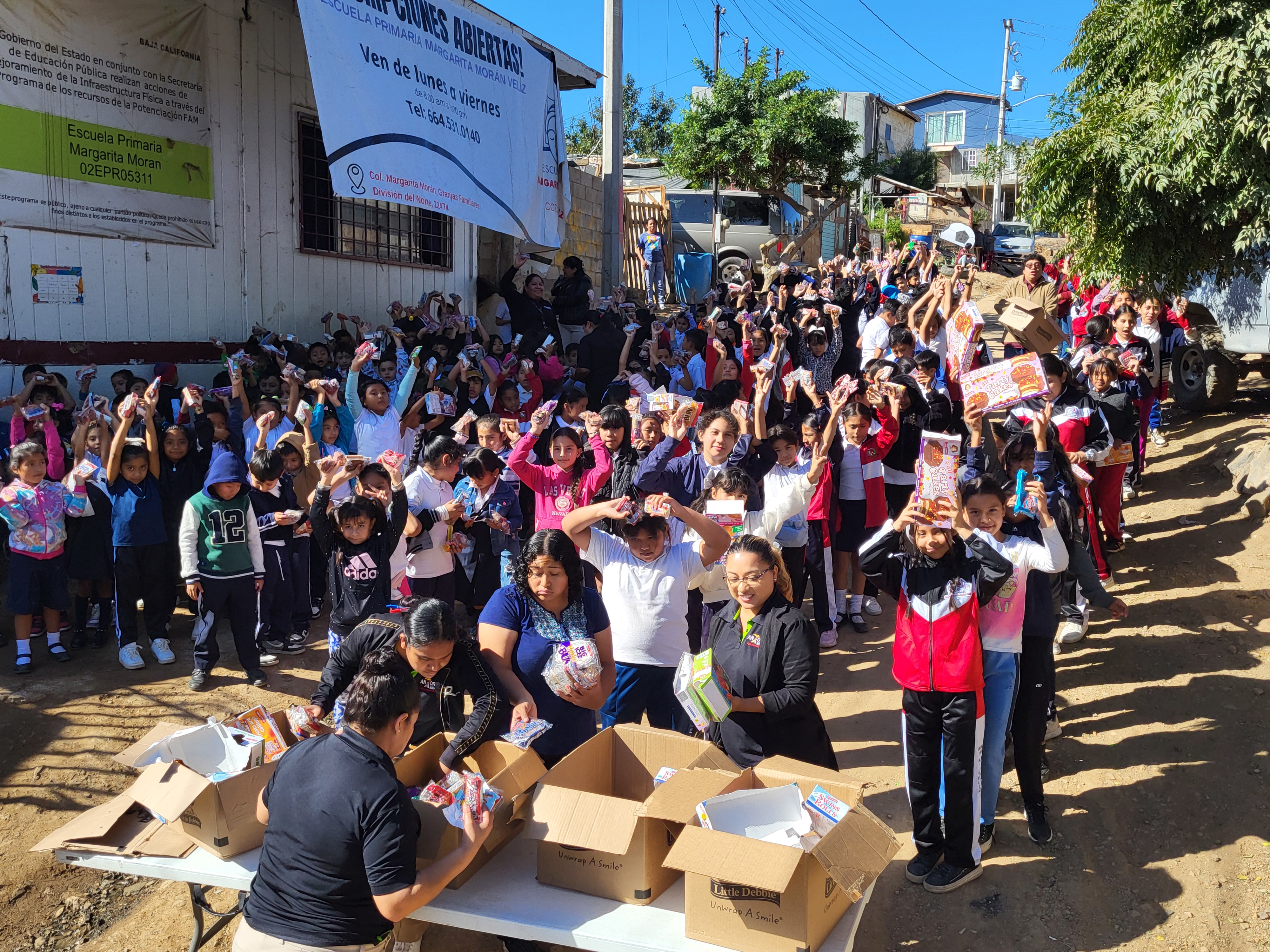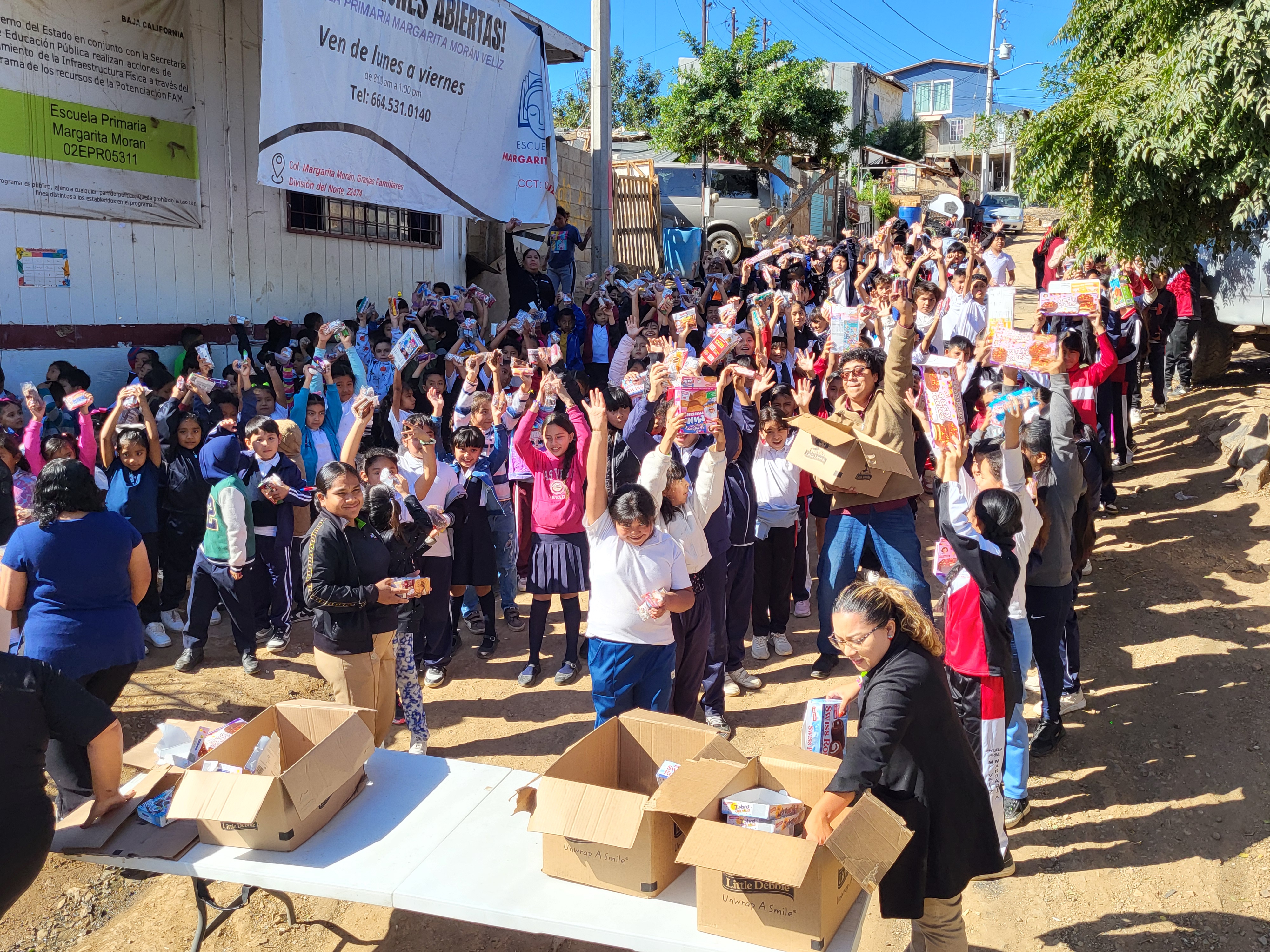 최근 수요일, 십수 년 동안 관계를 이어오고 있는 티화나 한 달동네의 미니 초등학교에 가서 과자들을 나누어 주었습니다. 이 과자들은 Long Beach 가게에서 받아온 것으로 벌써 10년이 넘게 이렇게 지원을 받아오고 있습니다.