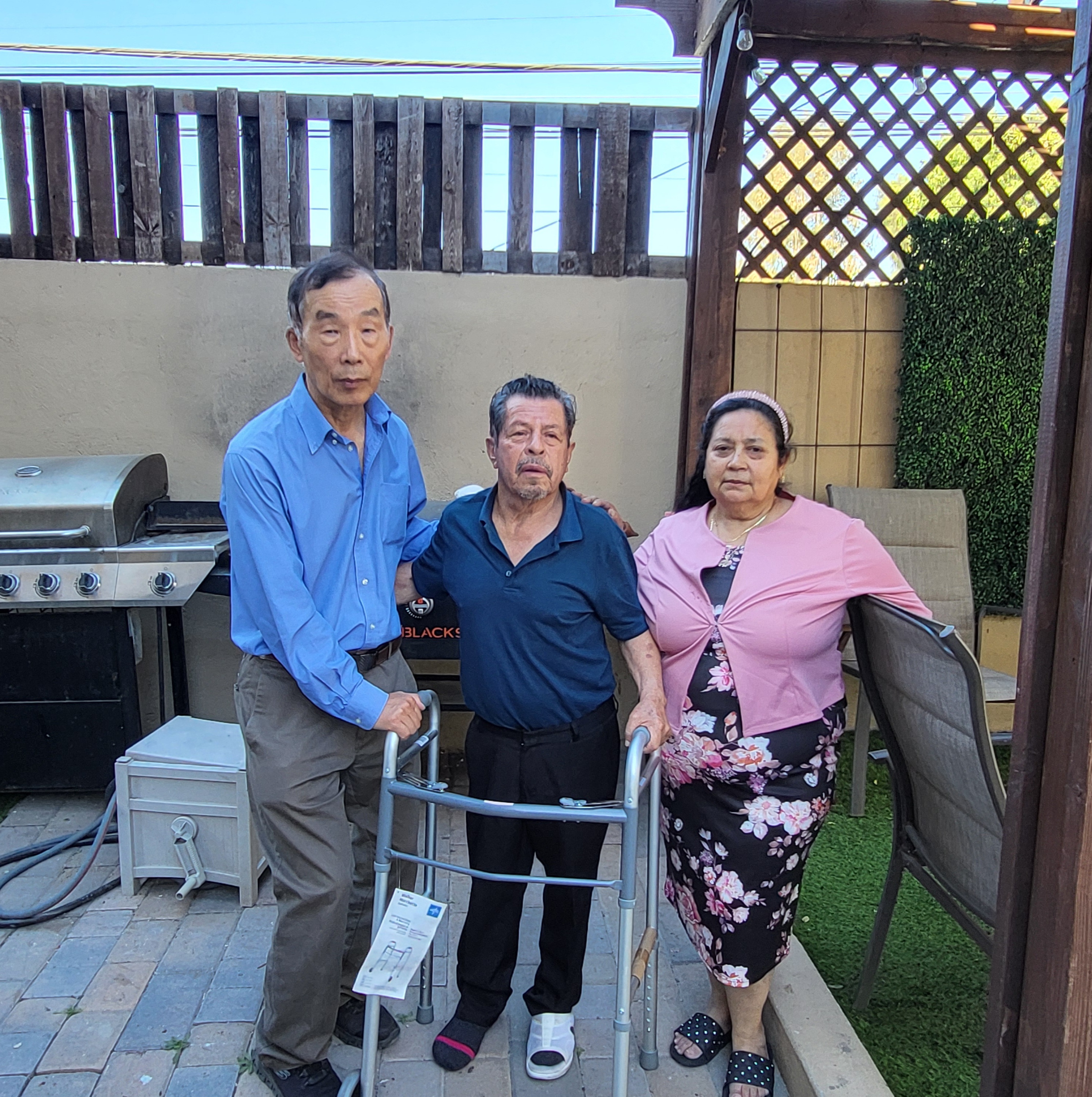 어제 티화나에 도착하여 오늘 찾아뵈려고 전화하니 퇴원하여 집에 계신다고 집으로 오라 하여 찾아갔습니다. 마침 집 마당에서 한 20여 명의 성도들이 예배를 드리고 있더군요. 잘 걷지를 못해 워커에 의지한 모습을 보니 마음이 아프네요.