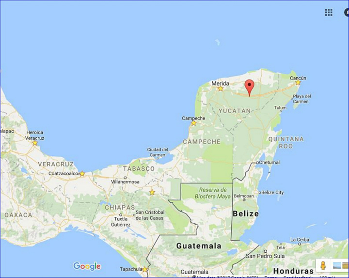 Cancun 중간쯤에 위치해 있습니다. Merida에서는 120Km,