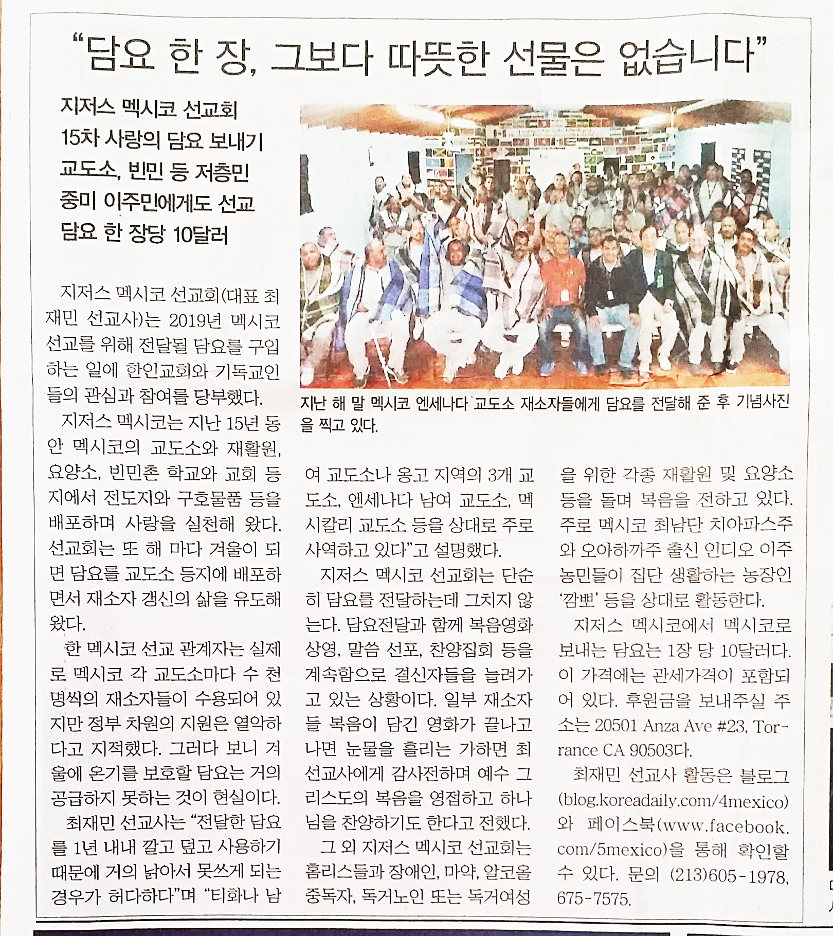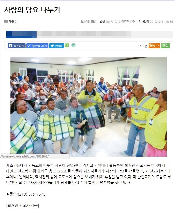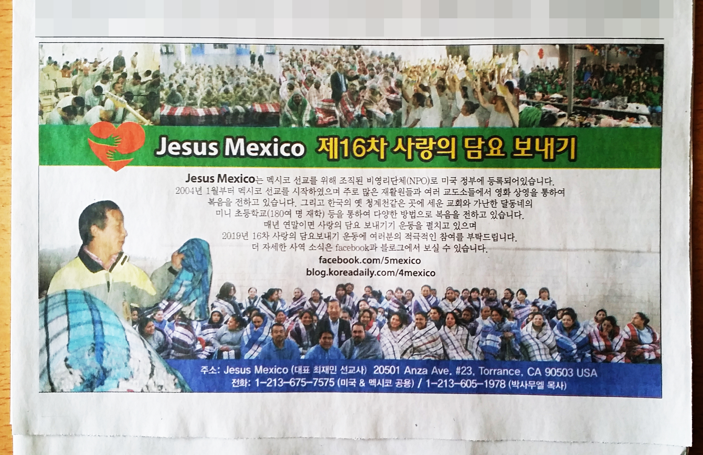 ![]() ![]() ![]() ![]() 매년 여러 곳에서 담요 헌금을 보내오기도 합니다. 그중의 한 곳 - [남가주 농아교회]에서도 담요 구입하라고 헌금이 왔었는데 잊을 수가 없습니다.