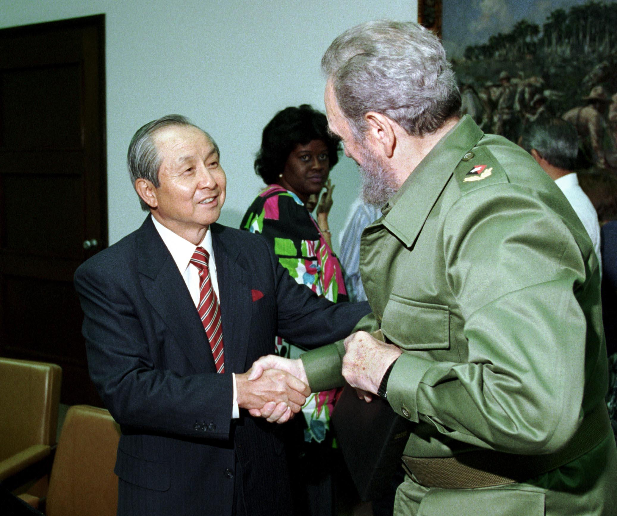 Cuba를 방문하여 Fidel Castro를 만나는 김장환 목사. 2000년 1월